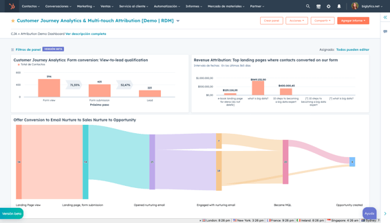 Microsoft Dynamics Customer Insights se creó principalmente para el marketing B2C y tiene herramientas de marketing B2B muy limitadas. HubSpot, por su parte, destaca en este aspecto, porque incluye una solución de calificación de cuentas con IA y herramientas avanzadas de ABM. Además, HubSpot te ayuda a coordinar mejor tus equipos de ventas y de marketing con prácticas funciones de colaboración, potentes herramientas de automatización entre departamentos e informes unificados. Con HubSpot, puedes crear fácilmente informes y paneles personalizados con todos los datos de tu empresa, algo para lo que los usuarios de Microsoft tienen que adquirir Power BI, lo que supone un coste y una complejidad adicional.