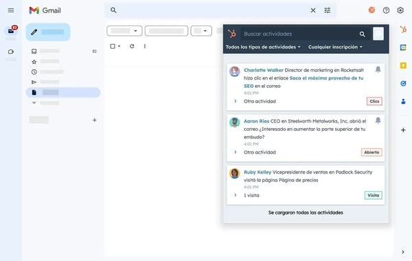 Con la integración del correo de HubSpot, puedes conectar tu bandeja de entrada para lanzar campañas de correo electrónico, hacer un seguimiento de cuántas personas interactúan con tus mensajes y registrar automáticamente esta información en los registros de los contactos del Smart CRM de HubSpot.
