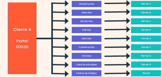 HubSpot asocia a los partners con los clientes en función de la línea de productos. Cuando un partner vende software a un prospecto o cliente de HubSpot según las reglas anteriores, tiene derecho a la distribución de ingresos y a la asignación de MRR por la venta que haya hecho en función de las líneas de productos específicas que se hayan adquirido. A partir de esa venta inicial, ese partner, otro partner o un representante de HubSpot pueden hacer cross-selling de otras líneas de productos.